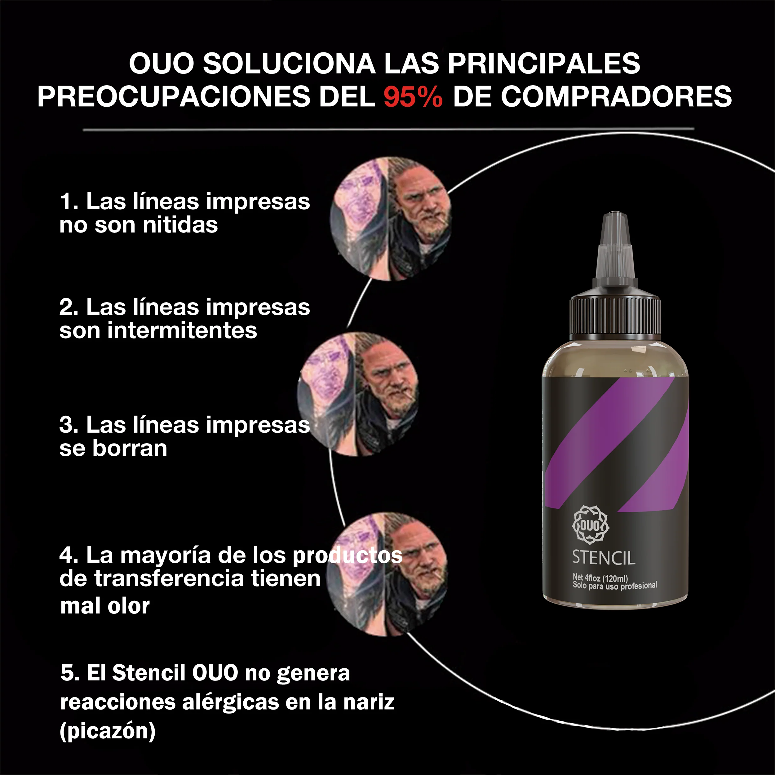 El Gel Stencil de Alta Duración OUO es la elección ideal para tatuadores que buscan transferencias nítidas, duraderas y sin borrones. Su fórmula profesional garantiza una adherencia firme y uniforme del stencil hectográfico, permitiendo líneas precisas y un tatuaje impecable.
