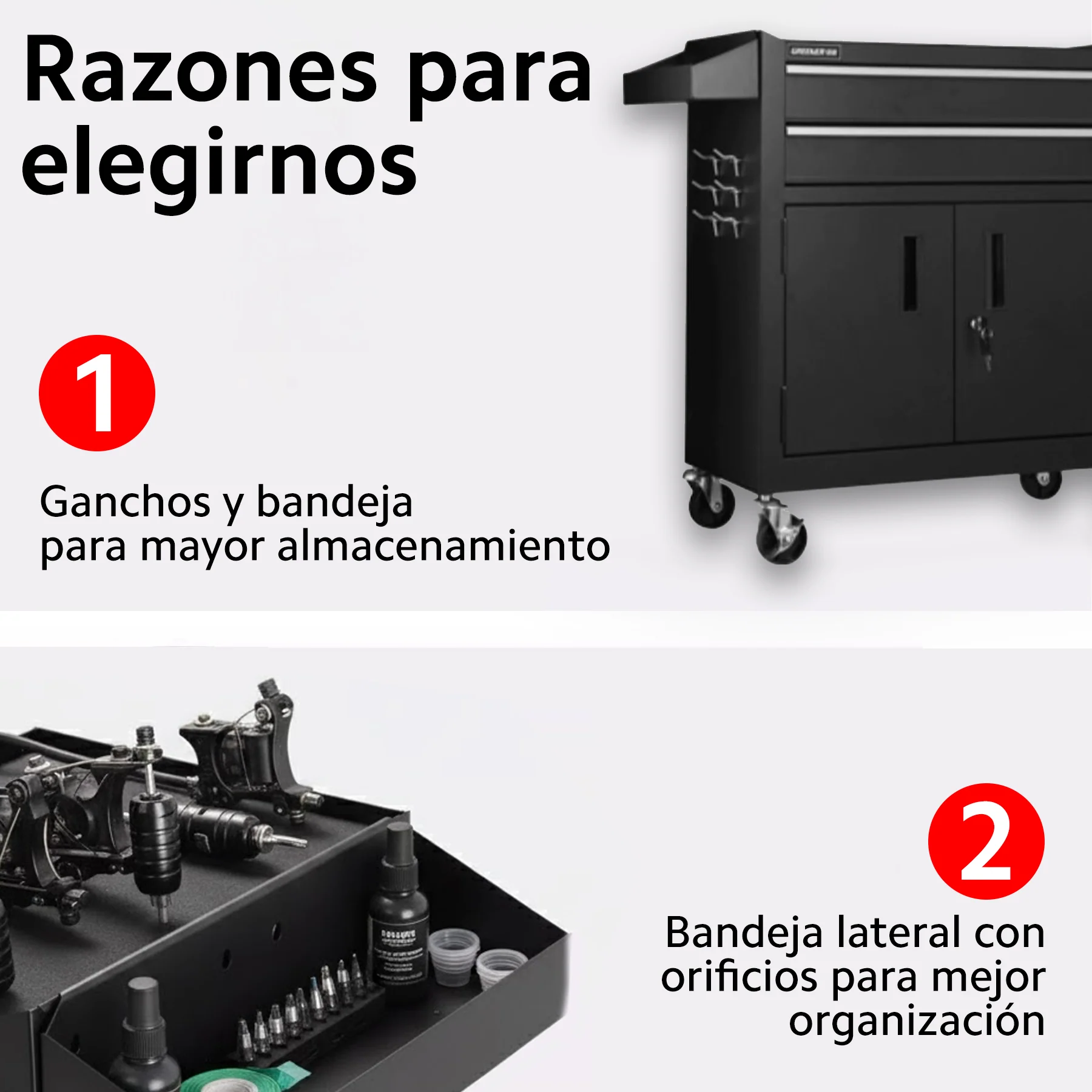 Este carrito auxiliar ha sido diseñado para profesionales que buscan resistencia superior, movilidad y una organización eficiente en su espacio de trabajo. Es la solución ideal para estudios de tatuaje, salones de belleza, clínicas, spas, talleres o barberías. Soporta una carga real de hasta 200 kg.