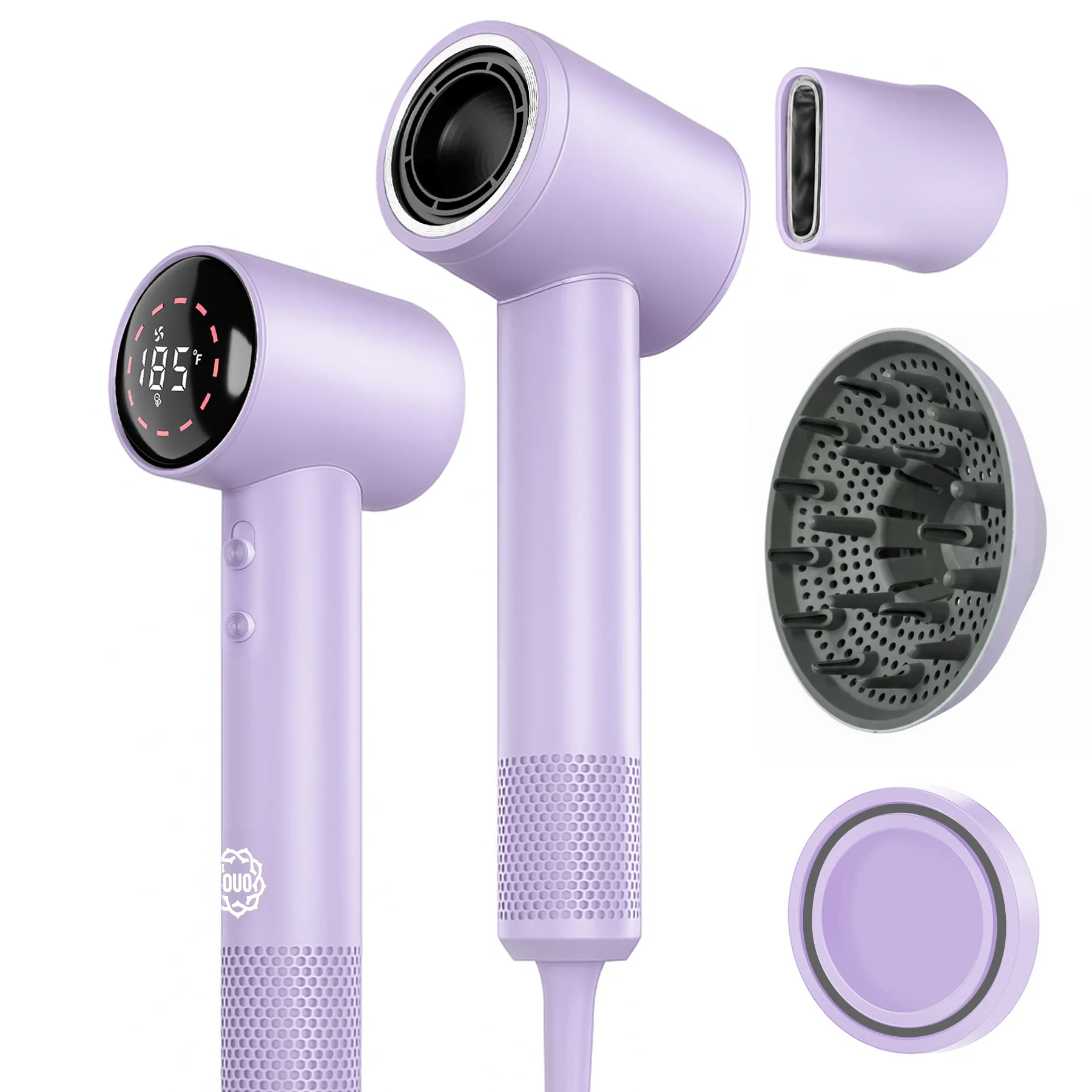 Secadora de Cabello con Iones Negativos, Difusor para Rizos y Boquilla Alaciadora | OUO 110,000 RPM Ligera, Silenciosa y Profesional