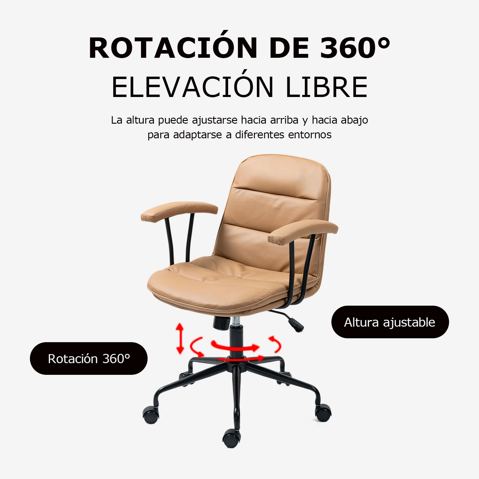 - Movilidad suave: Ruedas giratorias de 360°, silenciosas y protectoras de pisos.
