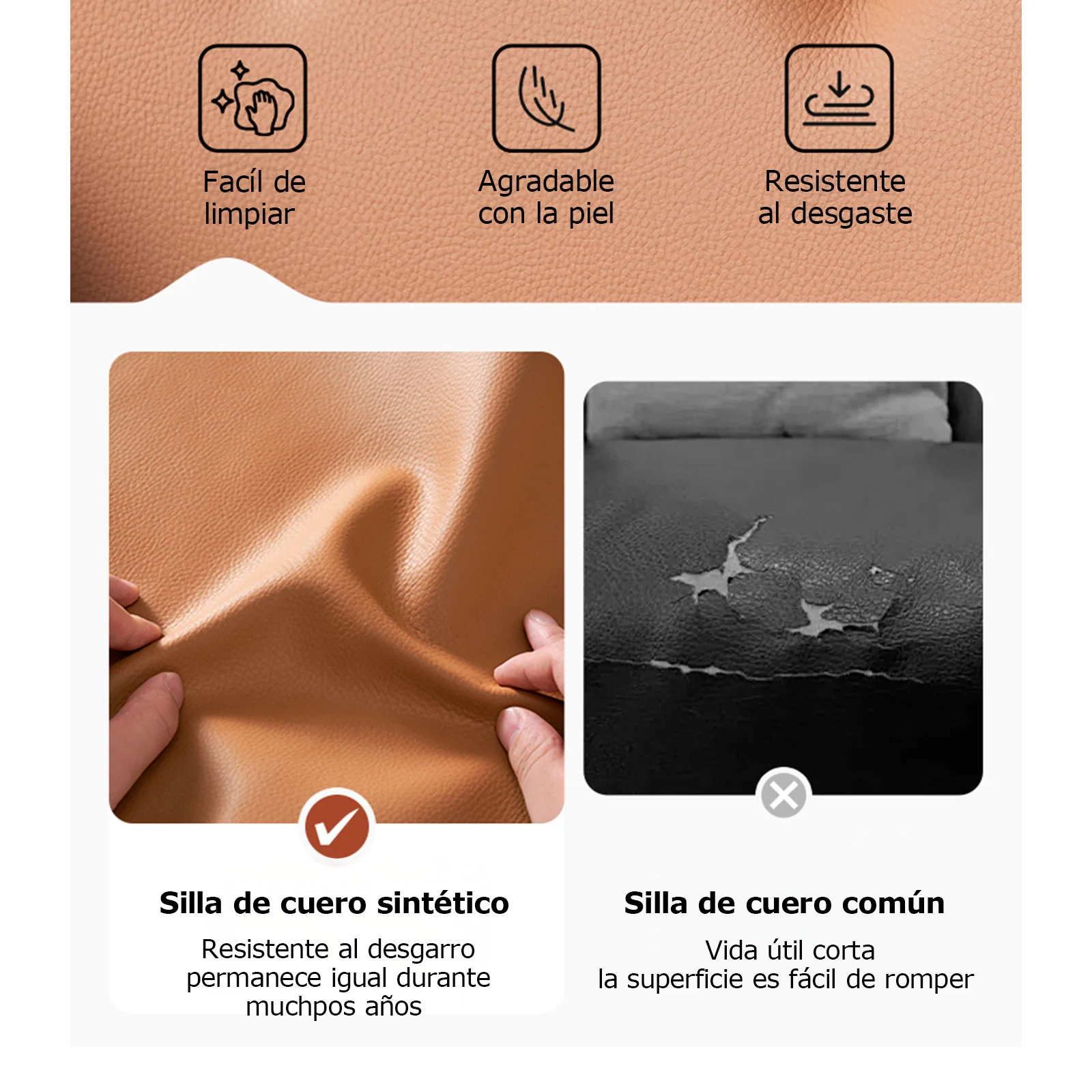 - Material premium: Piel sintética fácil de limpiar y acolchado de alta densidad.