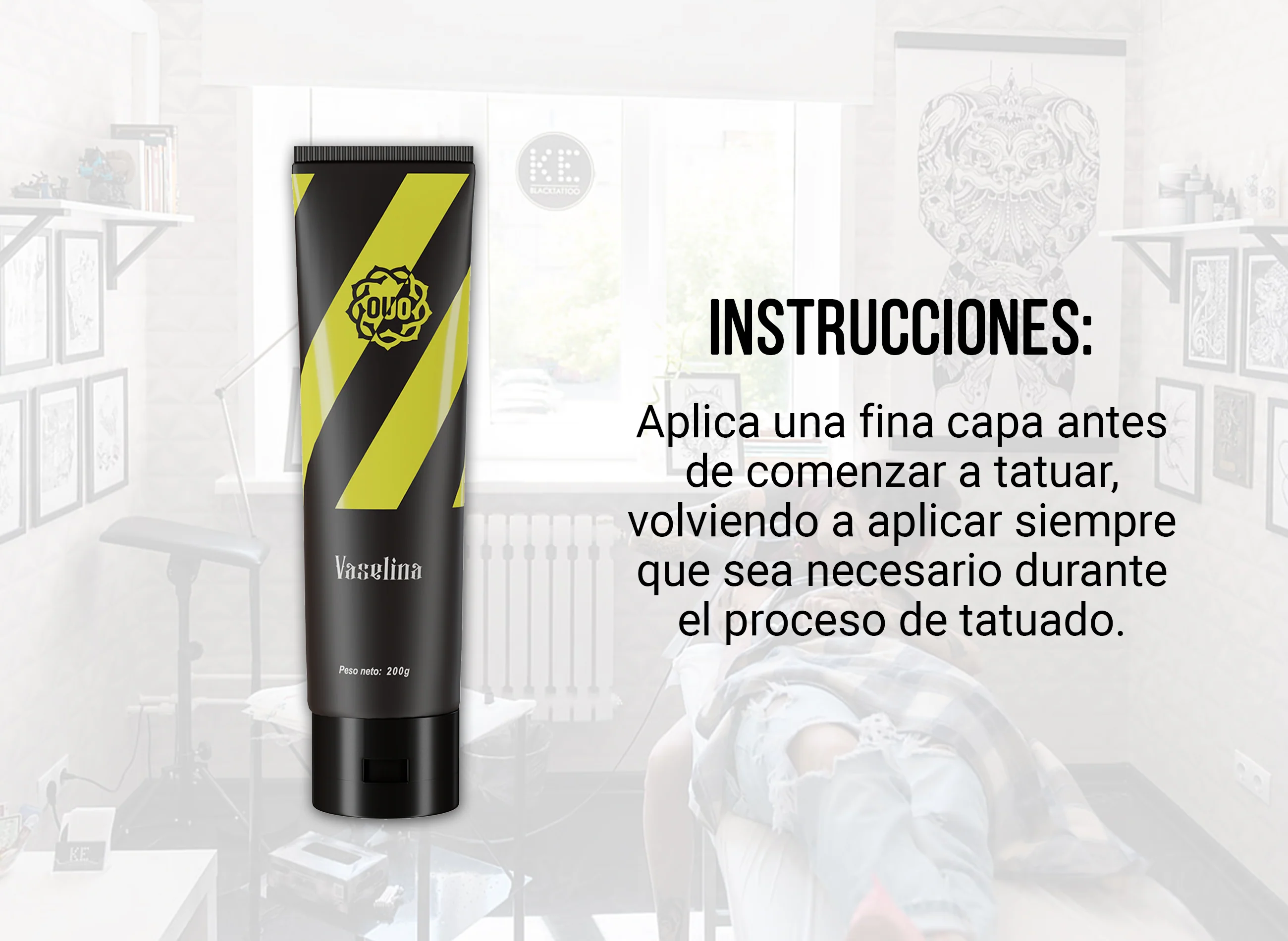 - Después del tatuaje: Aplicar una fina capa sobre la piel tatuada para mantener la hidratación y acelerar la recuperación.